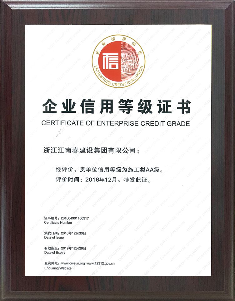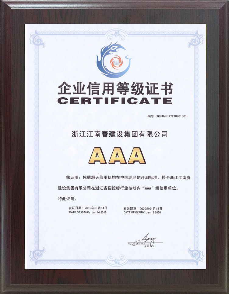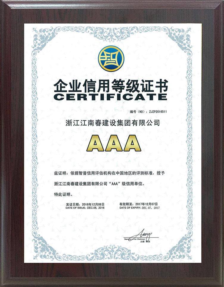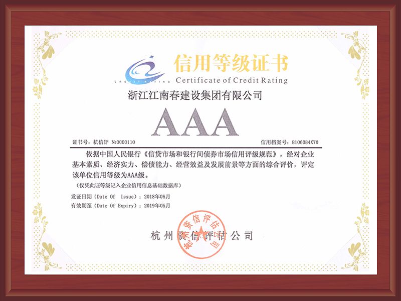 企業(yè)信用等級證書AAA