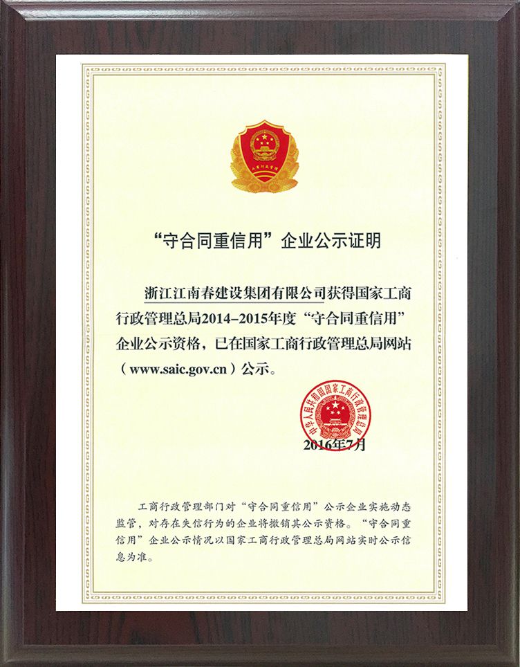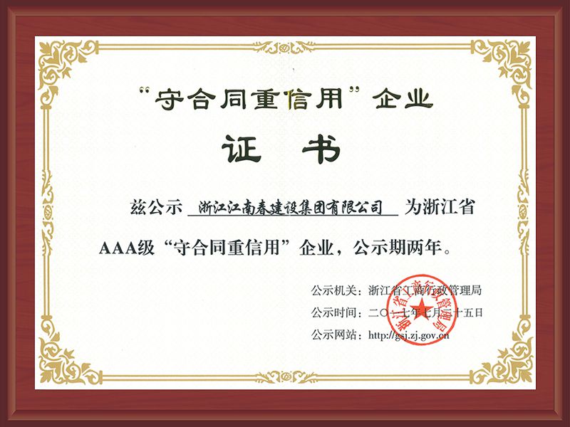 浙江省AAA級“守合同重信用”企業(yè)