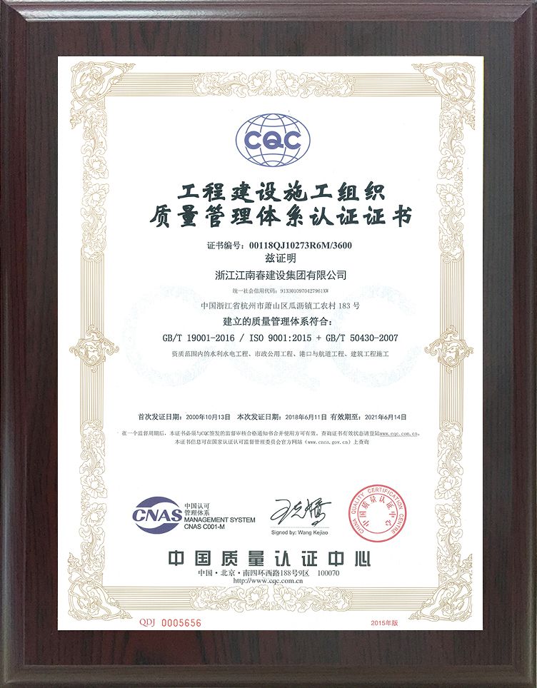 質量管理體系認證證書