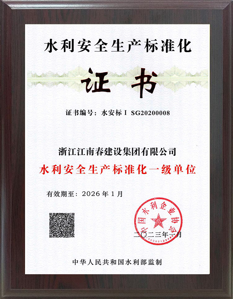 水利安全生產(chǎn)標(biāo)準(zhǔn)化一級(jí)單位