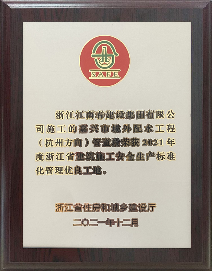 嘉興市域外配水工程(杭州方向)管道二標-2021年度浙江省建筑施工安全生產(chǎn)標準化管理優(yōu)良工地