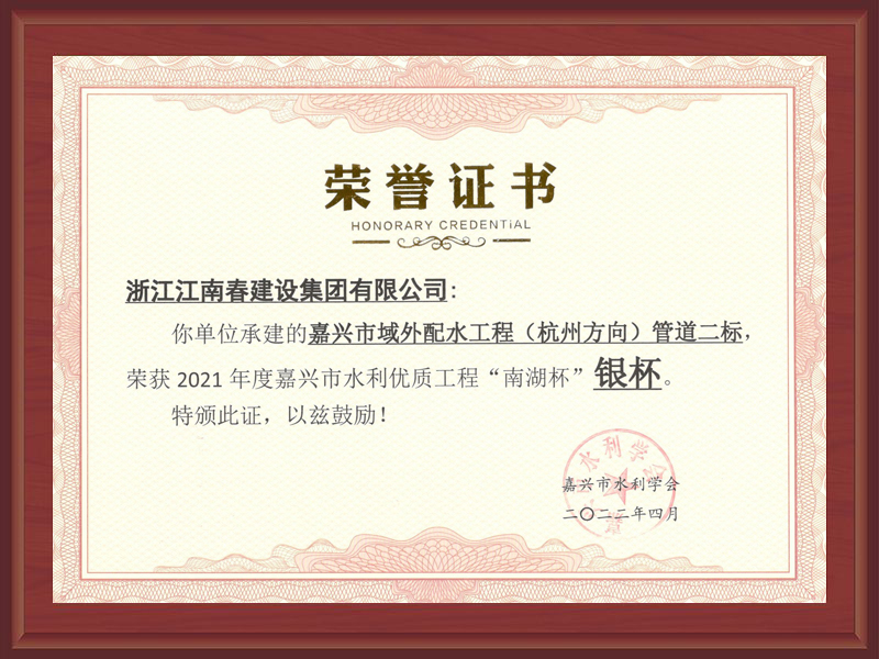嘉興市域外配水工程(杭州方向)管道二標南湖杯