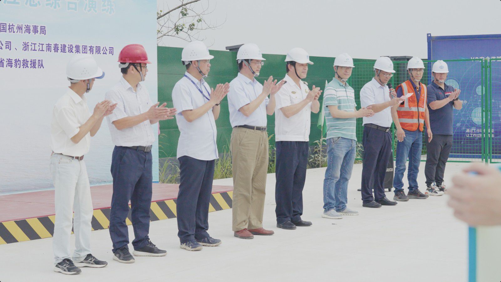 本次演練由浙江省錢塘江流域中心、杭州海事局主辦,浙江江南春建設集團有限公司與中國電建集團華東勘測設計研究院有限公司聯(lián)合承辦,浙江水專工程建設監(jiān)理有限公司、浙江省海豹救援隊協(xié)辦。錢塘江流域中心黨委副書記任根泉、綜合部副主任王澤斌、海塘工程部副主任孫超,杭州海事局副局長酈海勤,江南春建設集團常務副總傅建華,中國電建華東院安環(huán)部主任張捷、浙江省海豹救援隊隊長侯雪源等領導蒞臨現(xiàn)場參加演練。